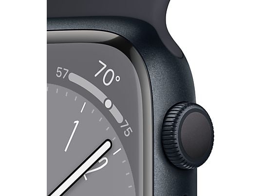 De nieuwe Apple Watch Series 8 – 45mm – Middernacht Aluminium heeft een strak design, nieuwe functies en extra lange batterijduur. De Apple Watch was al onmisbaar en kan nu nog veel meer. Temperatuur registratie geeft vrouwen meer inzicht in hun gezondheid. Crashdetectie schakelt hulp in bij noodgevallen. De Work-out-app op de Apple watch series 8 is verbeterd met nieuwe manieren om te trainen. Een gezonde toekomst ziet er mooier uit dan ooit.